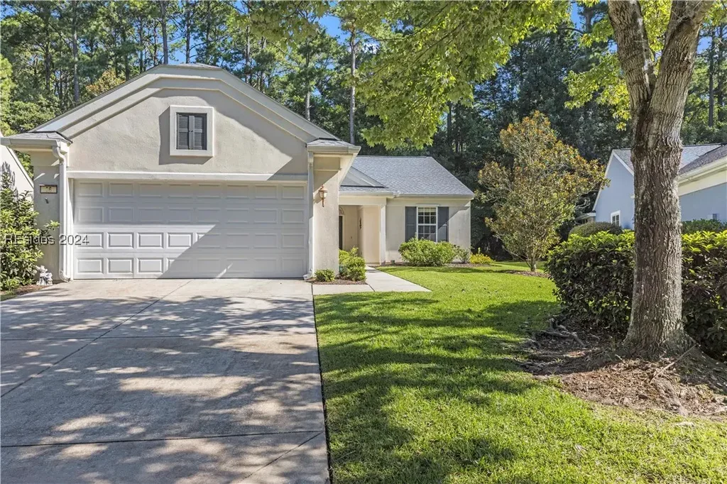 Golf cart included! Welcome to amenity-rich Sun City! This checks all the boxes: Beaufort County, on an eyebrow of a low traffic street, wooded view out the back, all season Carolina room, and a screened porch. This charming residence boasts 2 BR, 2 BA, and a Carolina room with a cozy fireplace. Nestled on an eyebrow lot backing up to serene woods, you'll enjoy privacy and tranquility. Step onto the screened porch and savor peaceful moments in nature. Don't miss this opportunity for serene living in a vibrant community! Clean stucco report available.