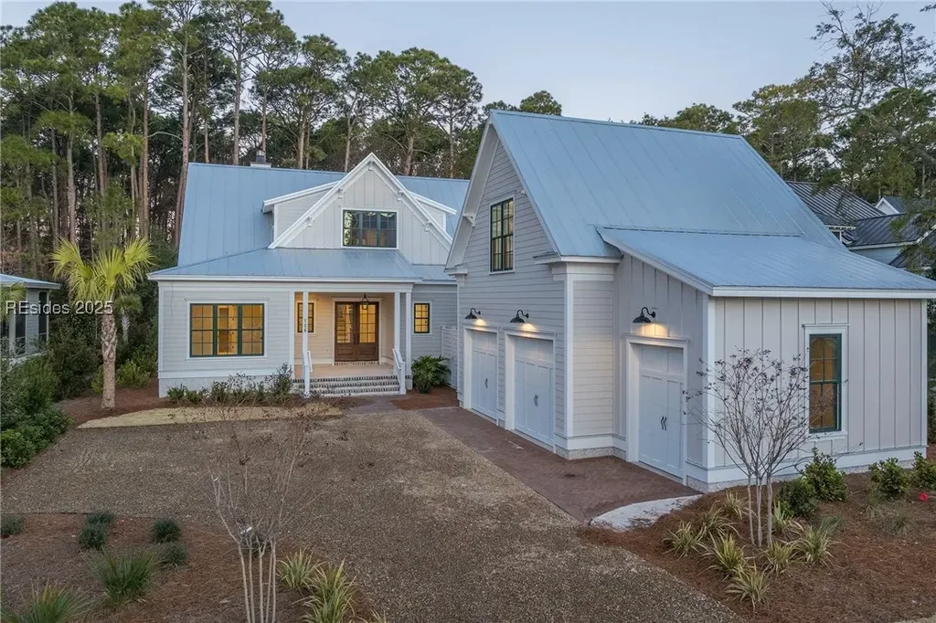 156 Hunting Lodge Road is a 4 bed 5.5 bath home with a carriage house in Palmetto Bluff’s River Road neighborhood, convenient to the Lodge and amenities. With 3,873 square feet of space the home creates scale with an open great room at the center combining the living and dining rooms, balanced against quieter outdoor spots like the screened porch with a kitchen and fireplace. A custom crafted kitchen includes a gas range and a spacious back pantry. The primary suite offers dual walk-in closets, a large bath with a walk-in shower and tub with three guest rooms and an office in the main house joined by MIL suite above the 2.5 car garage.