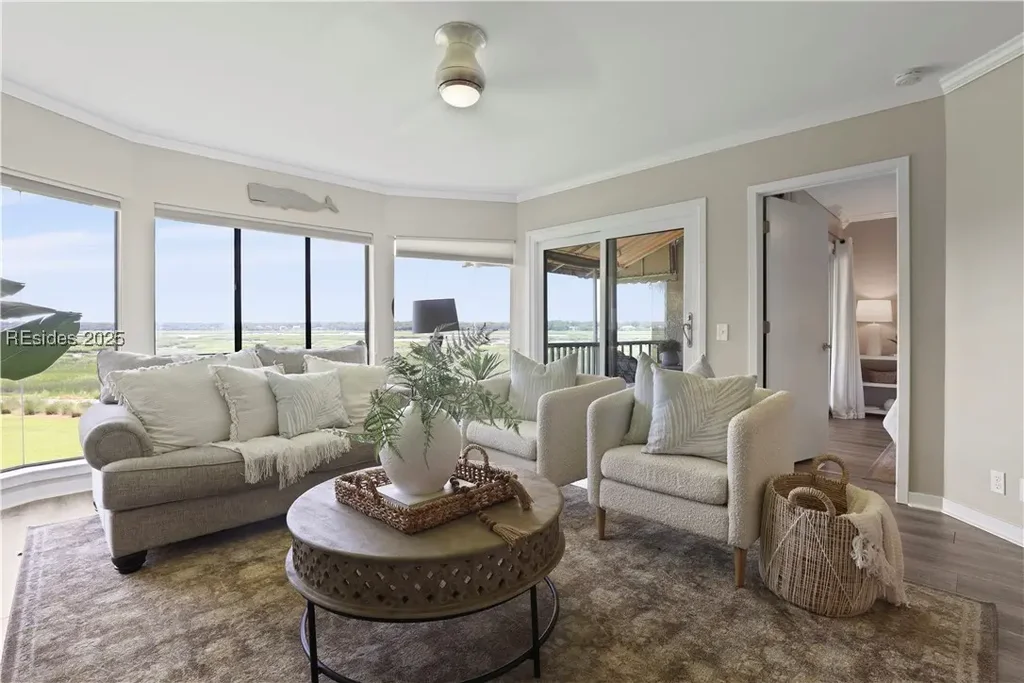 Expansive waterfront views is what this Newport Villa is all about.Relaxing on your balcony enjoying the sunset over the Broad Creek is Low-Country living at its finest .This 2BR 2 Bth second floor flat is well appointed with LVP floors,shaker cabinets,granite countertops,SS appliances and updated walk in showers.Newport is tucked away within Shelter Cove with access to all SC and Palmetto Dunes has to offer minutes away from shopping and dining.Shuttle ride to beach.Tennis and pickleball along with pool and spa overlooking waterway.and many community events make Newport a great place to live.Enjoy fireworks on your deck.Seller will offer credit of 1 year of Regime !!