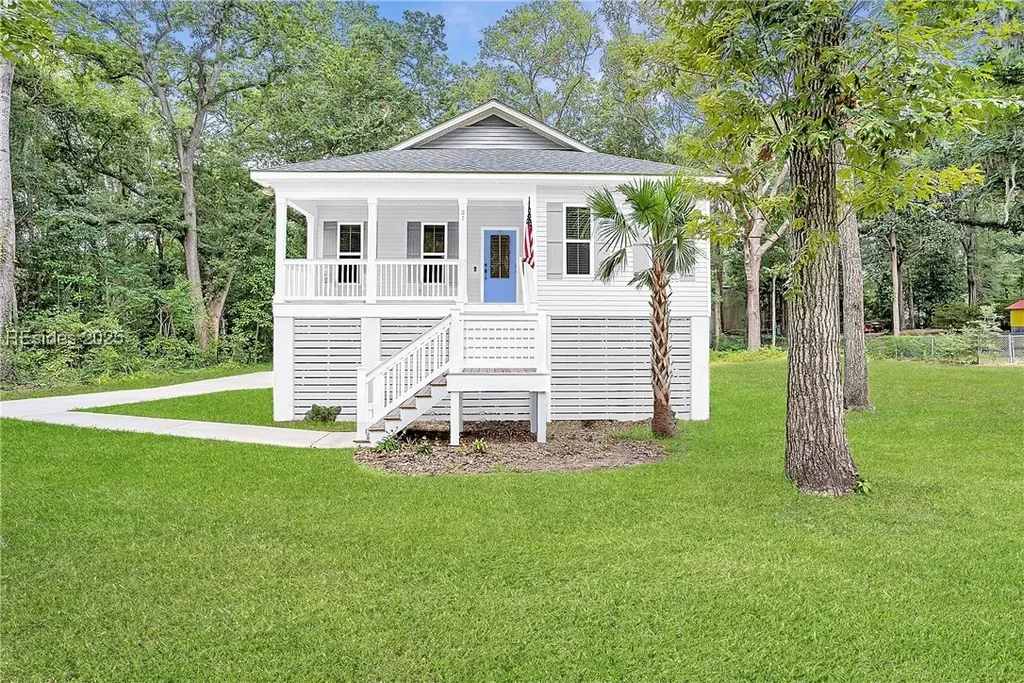 Discover a vibrant half-acre homesite in a 24/7 gated community on St. Helena Island, Beaufort County. Enjoy a waterfront retreat near the Lowcountry's best beaches and parks. This fully customizable proposed home features 3 beds, 2 baths, an open floor plan, and an enclosed lanai. The gourmet kitchen offers stainless steel appliances, quartz countertops, a large pantry, and separate laundry. The primary suite boasts an ensuite with dual vanities. Fish at the community dock, just 11 miles from downtown Beaufort’s shops and dining.