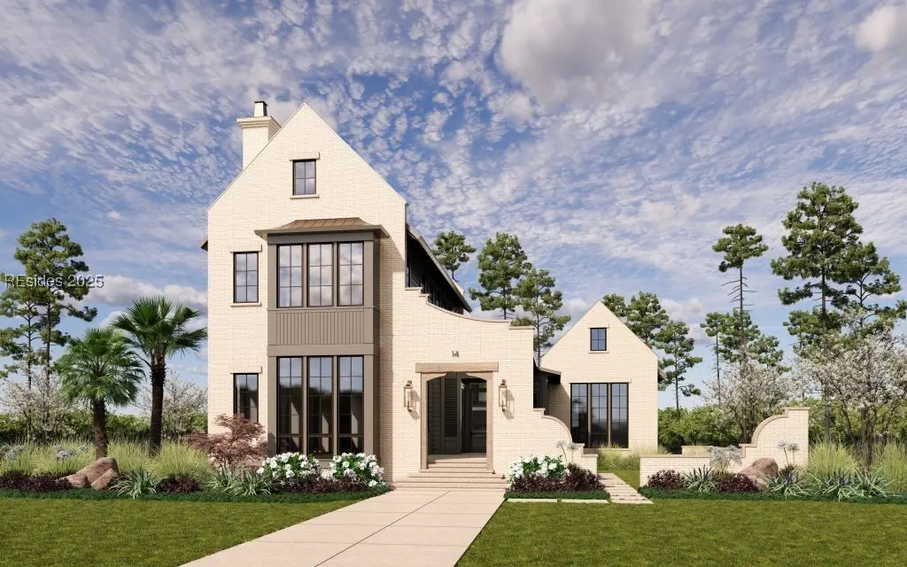 14 Lyonia, currently under construction, is a 3-bed, 3.5-bath home in Palmetto Bluff’s Moreland Forest with a floorplan that flows from indoors to outdoors. The entry leads right to a screened porch, flowing inward to the open living and dining rooms with a gas fireplace and kitchen with a center island and gas range. A bar area for entertaining, with a mudroom and full laundry for livability. The ground floor primary suite has views of the central courtyard, a large closet and an ensuite bath with wet room shower and tub, while two second floor suites share a flex space with a bar.