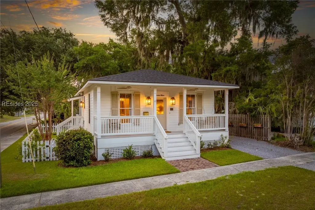 SHORT TERM RENTAL permit approved and safety inspection passed. Experience this charming Lowcountry cottage located in the historic district of downtown Beaufort. Tastefully renovated with high end finishes throughout and conveniently located just a short distance from local shops, restaurants and Waterfront Park. This thoughtfully updated home features original hardwood floors, nine-foot ceilings, custom crown molding, and designer touches throughout. The kitchen boasts Carrara Gold countertops and high-end appliances. Enjoy a marble bathroom, custom window treatments, and designer wallpapers. Outside, relax in the herringbone brick courtyard or fenced side yard. Carefully curated, with nearly all upgrades completed in 2024. This is a rare opportunity to own a turnkey investment property or a primary home with deep historical roots and modern sophistication in one of Beaufort's most desirable neighborhoods.