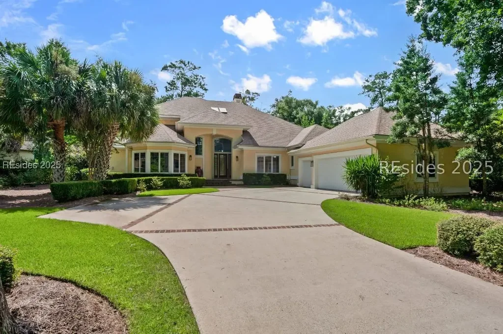 Beautiful home which was remodeled and is like new. 95% of flooring has been replaced, remodeled kitchen and baths, two pantries, large family room off kitchen with see thru fireplace to LR, smart thermostats, serene pool overlooking lagoon and golf green, rich wood-paneled office with full bath and closet (could be 4th bedroom). Large lot with wooded area across street for privacy. Rebuilding home from scratch would exceed 2m.